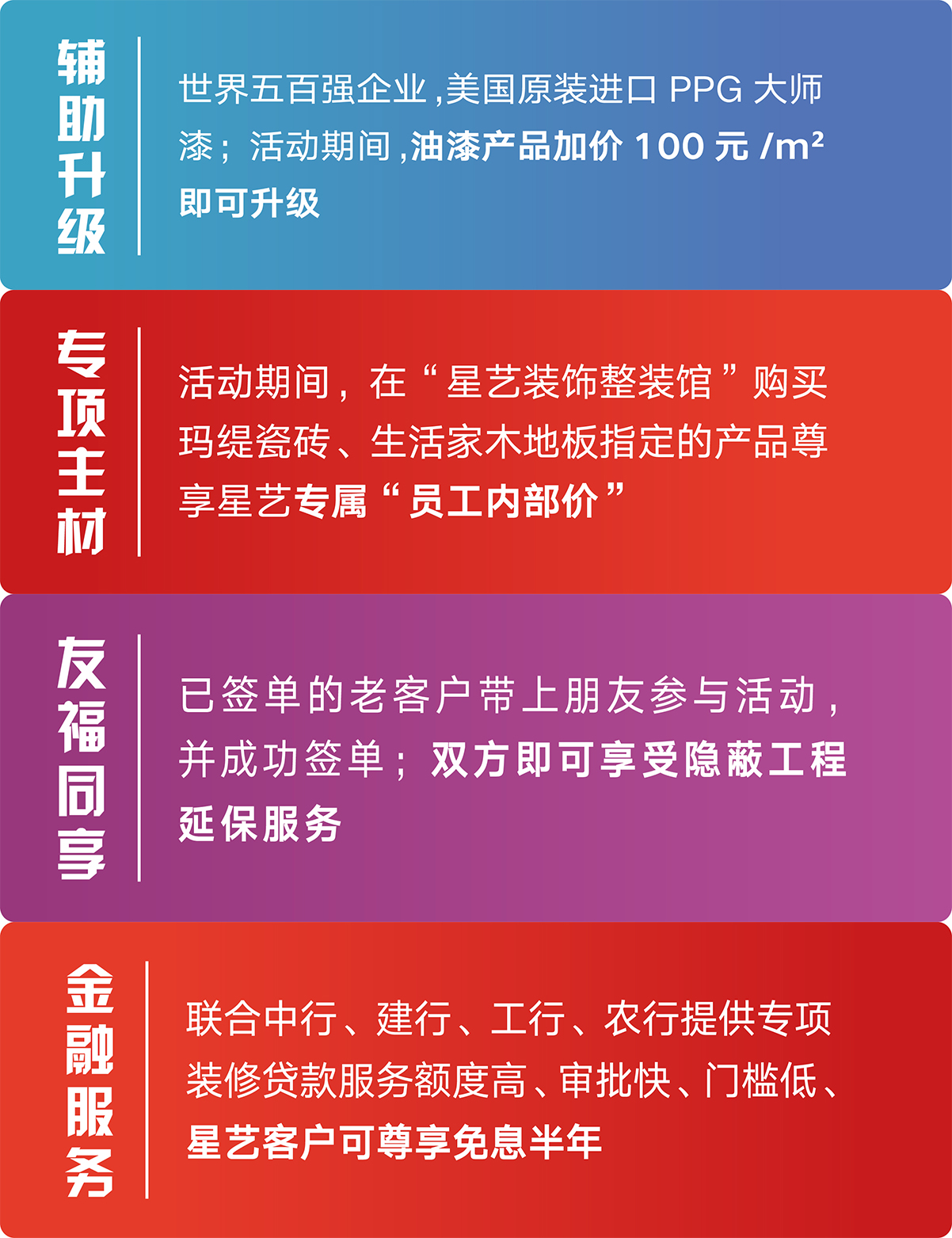 • 品牌主材折扣,星藝裝飾專屬員工內(nèi)部價