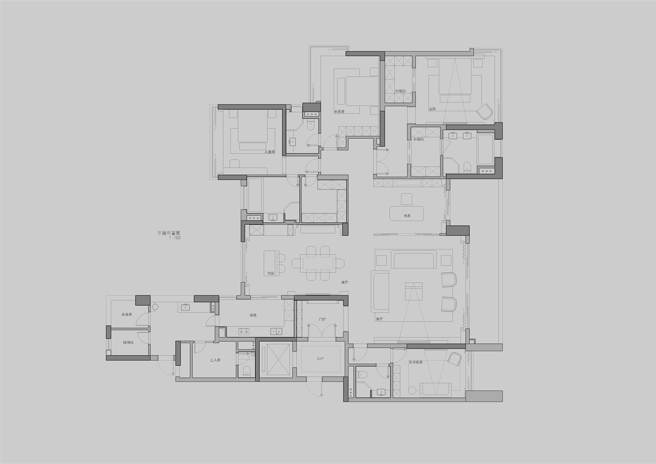 本案設(shè)計是位于海珠區(qū)380㎡的住宅,擁有無敵景觀一視野,業(yè)主90后,準(zhǔn)備做婚房,要求輕奢,鐘愛石材,金屬和皮質(zhì)的家居風(fēng)格,敞開式書房通過隔斷可移動屏風(fēng)于客戶區(qū)域串聯(lián)起來,可開可隔斷的靈動組合,最大的強化空間包容及開闊性,用中西結(jié)合的方式為即將到來的婚姻生活帶來更高的幸福指數(shù),打造溫馨的生活環(huán)境。