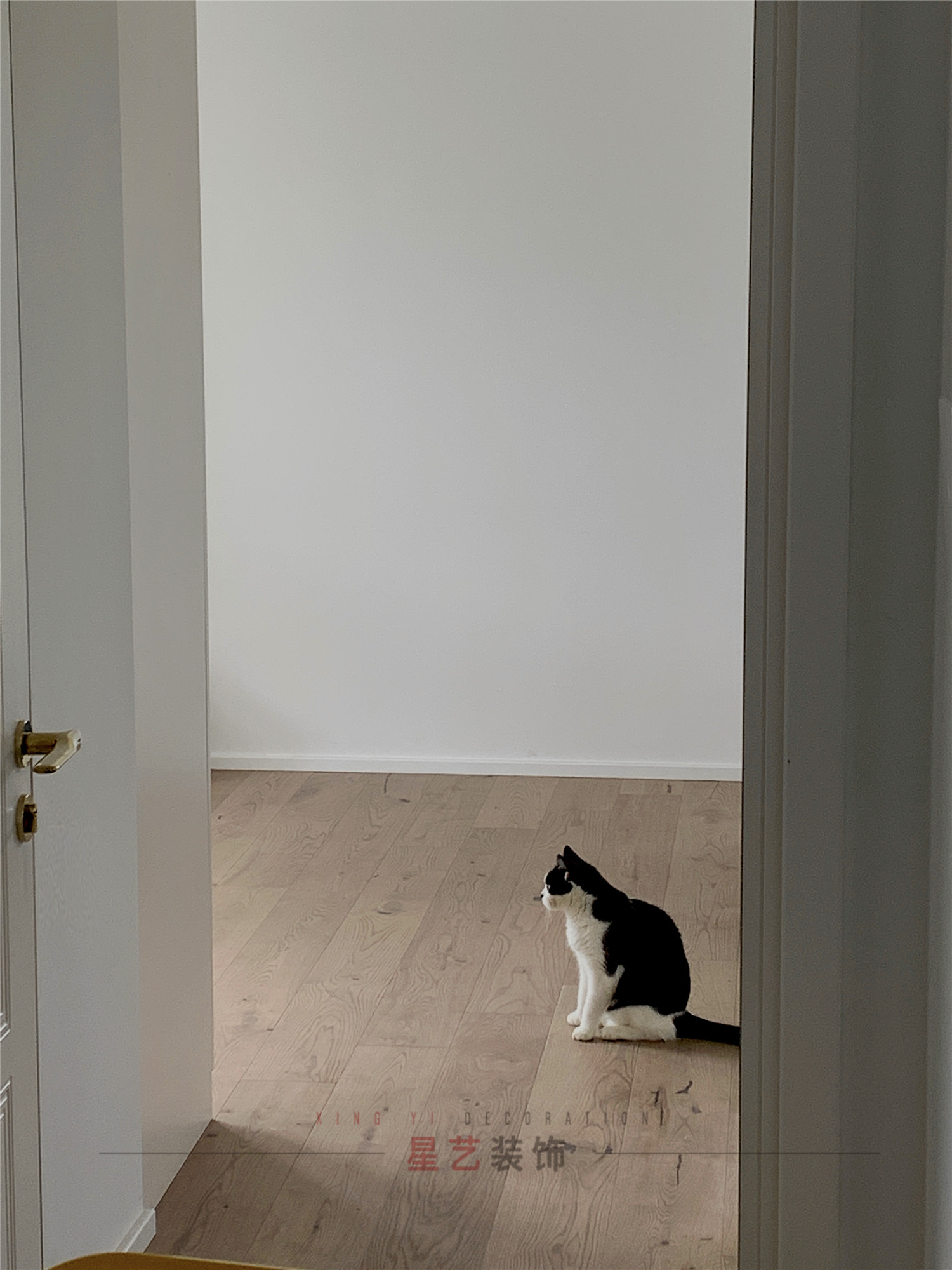 照明是摒棄傳統一個主燈點亮整個房子的方式,采用射燈,軌道燈,燈帶局部照明,讓整個房子更有層次,不管是軌道燈打到墻上反射出來的還是燈帶從天花折射出來的燈光都是非常柔和的,即使是射燈也是采用4000K(中性光)防炫射燈,讓整個空間更加柔和舒適。墻面及所有房門跟柜體也是統一白色讓整個房子更整體,踢腳線也是采用宅邊白色貫穿整個房子。