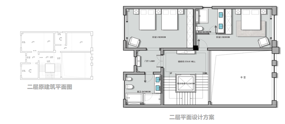 二樓的臥室設置兩張雙人床,平常可以作為備用臥室,方便有客人或者親戚留宿。