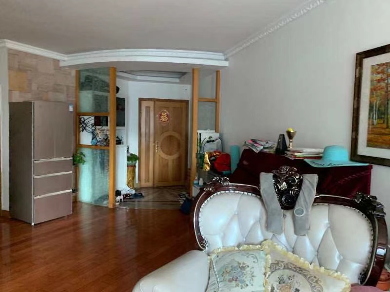 在客廳進門處巧妙的加上了玄關(guān)屏風,整體的材質(zhì)也和整體的風格相得益彰,選用了金屬拉絲不銹鋼材質(zhì)夾亞克力玻璃做拉斯處理。