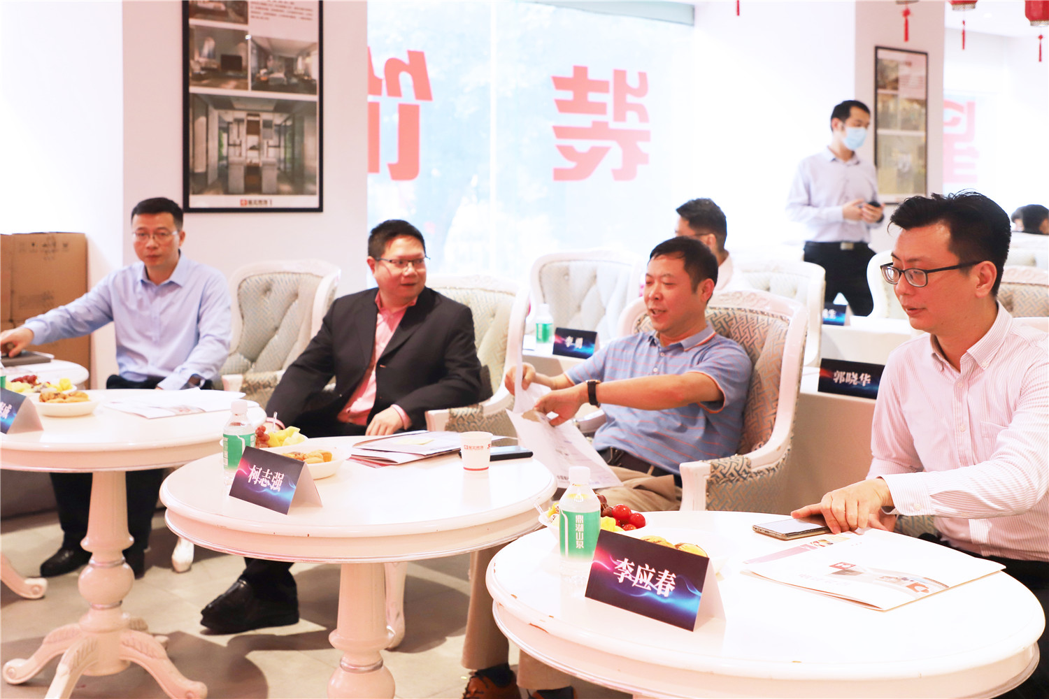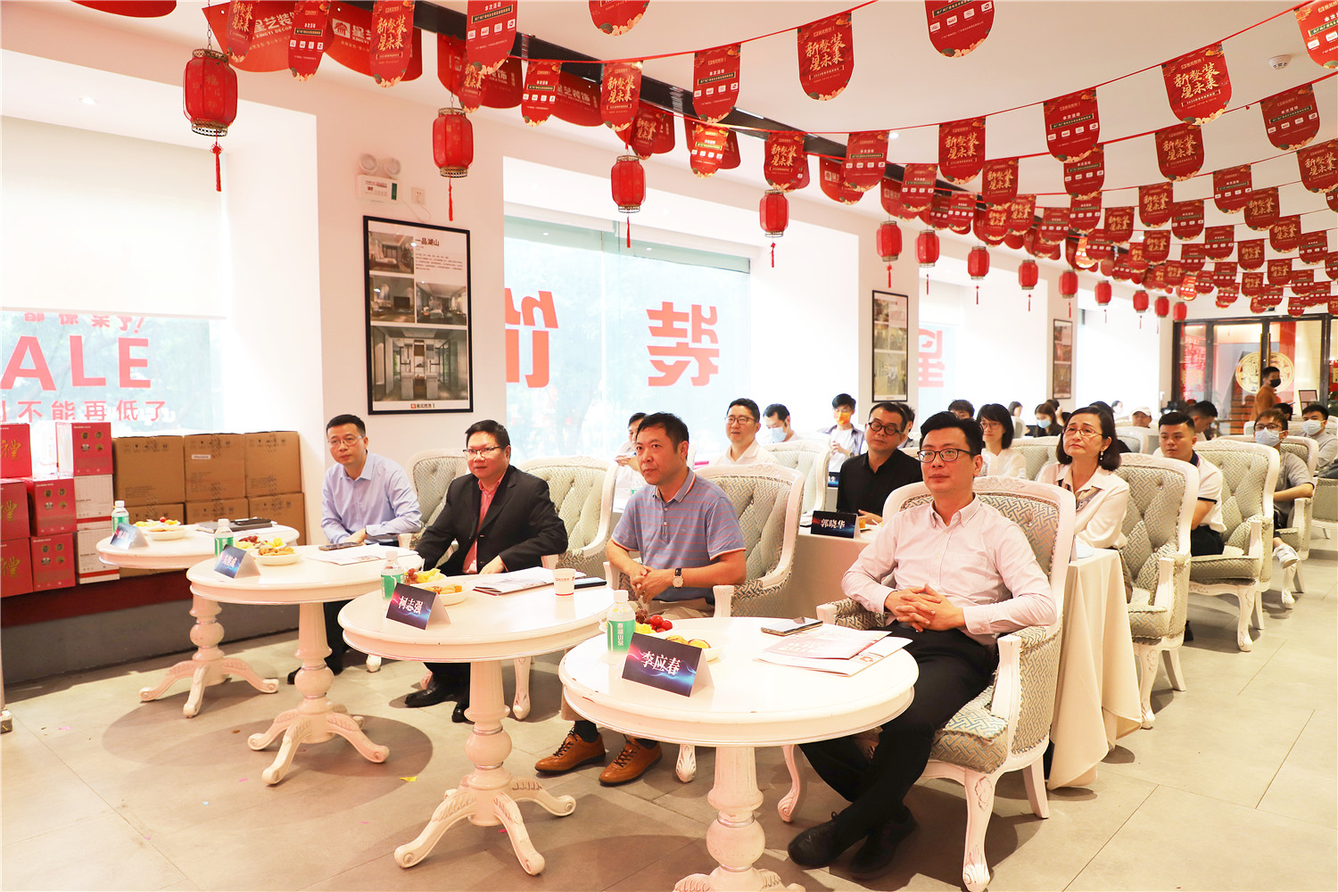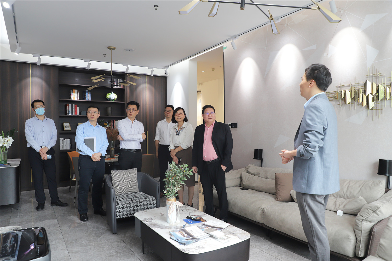 星藝裝飾廣州分公司總經(jīng)理柯志強,副總經(jīng)理劉亦萍、總設(shè)計師郭曉華 、工程總監(jiān)汪維亮、星藝整裝館總經(jīng)理黃桃生、設(shè)計總監(jiān)江文鋒,整裝工程部經(jīng)理石峰;