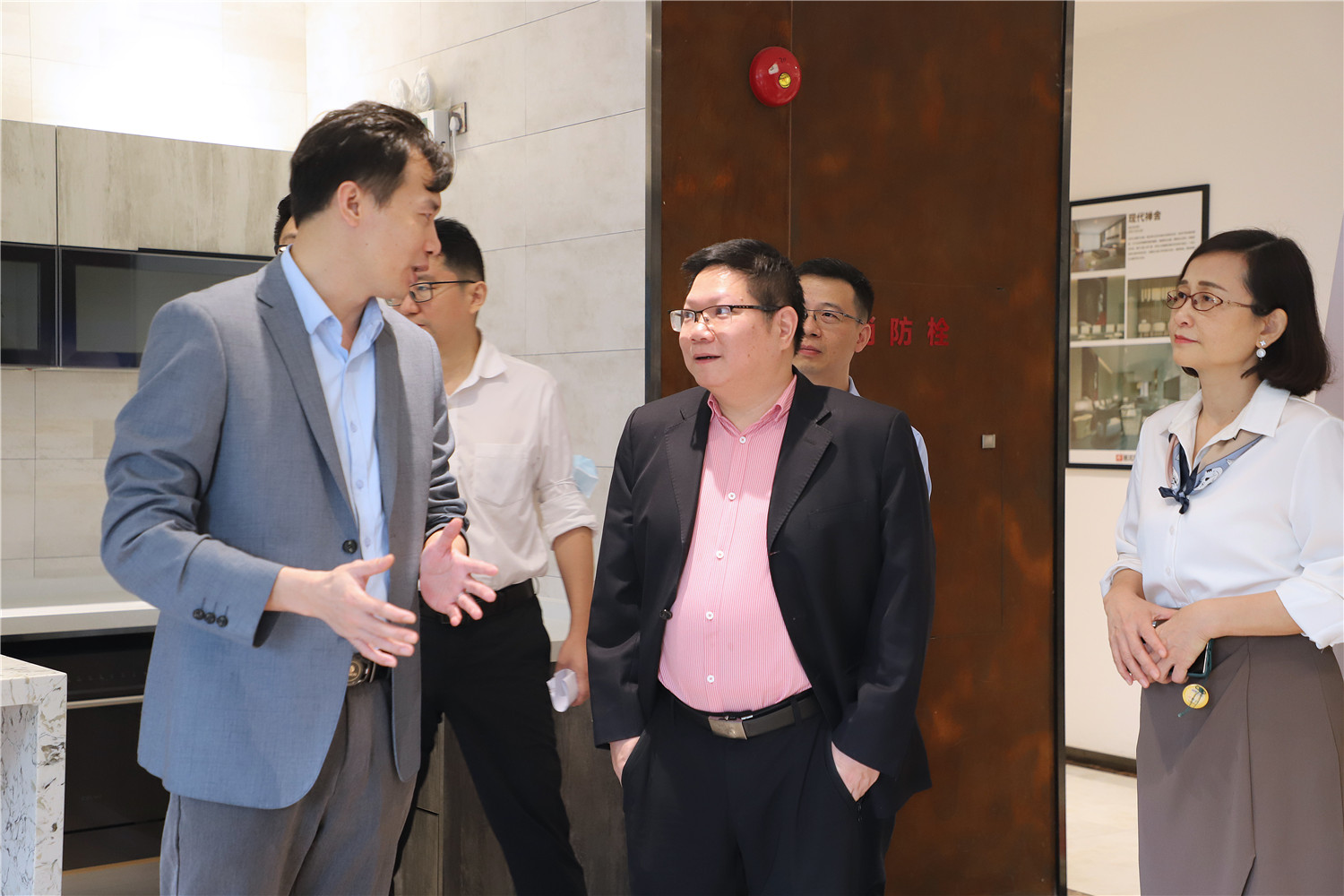 簽約儀式開始前,星藝整裝館總經(jīng)理黃桃生帶領(lǐng)中國電信公司領(lǐng)導一行人步入展館進行參觀活動,并為來訪人員進行展廳的詳細介紹。