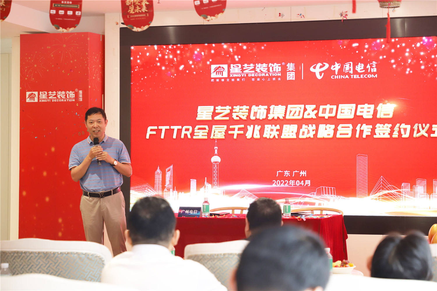 2022年4月24日,星藝裝飾廣州分公司與中國電信廣州分公司FTTR全屋千兆項目戰(zhàn)略合作簽約儀式在廣州市星藝整裝體驗館圓滿舉行,在立足客戶需求為出發(fā)點,合作共贏的基礎(chǔ)上,正式達成FTTR全屋千兆項目戰(zhàn)略合作伙伴關(guān)系,實現(xiàn)強強聯(lián)合、優(yōu)勢互補。