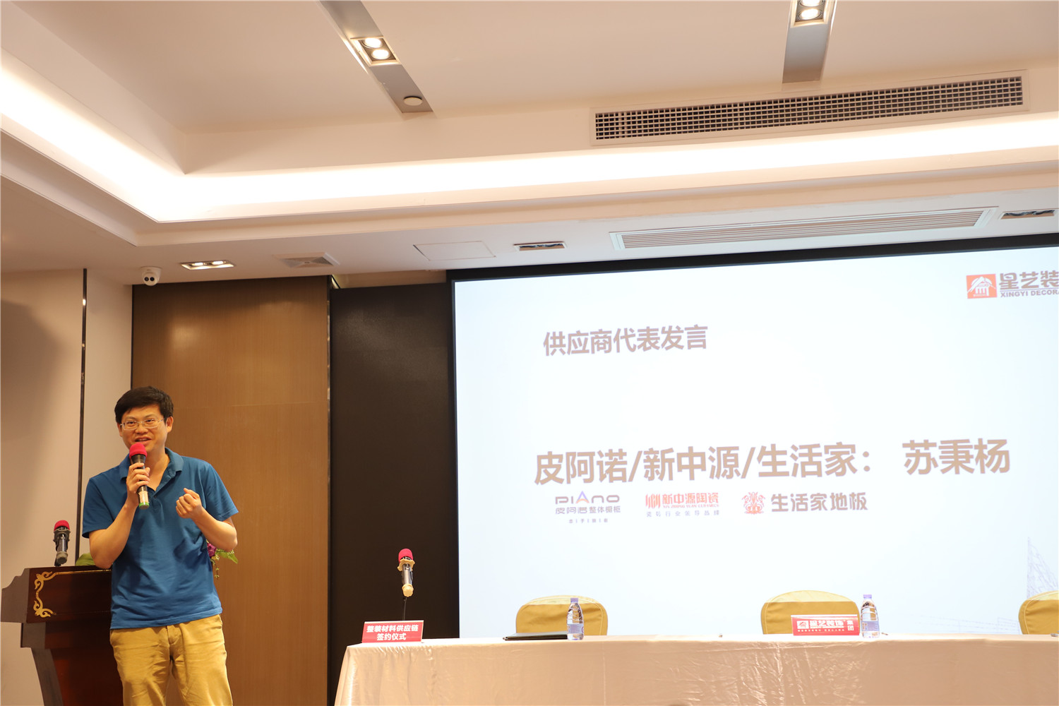 活動尾聲,由星藝裝飾集團廣州分部總經理柯志強進行演講;回顧星藝裝飾三十余年的不懈奮斗,柯總深切感受到團結合作對企業的重要意義,也對每位供應商及星藝大家庭的小伙伴們表示感謝;同時也希望在以后的合作中可以進一步實現提升,發展和壯大,讓星藝裝飾能走的更穩,更遠!