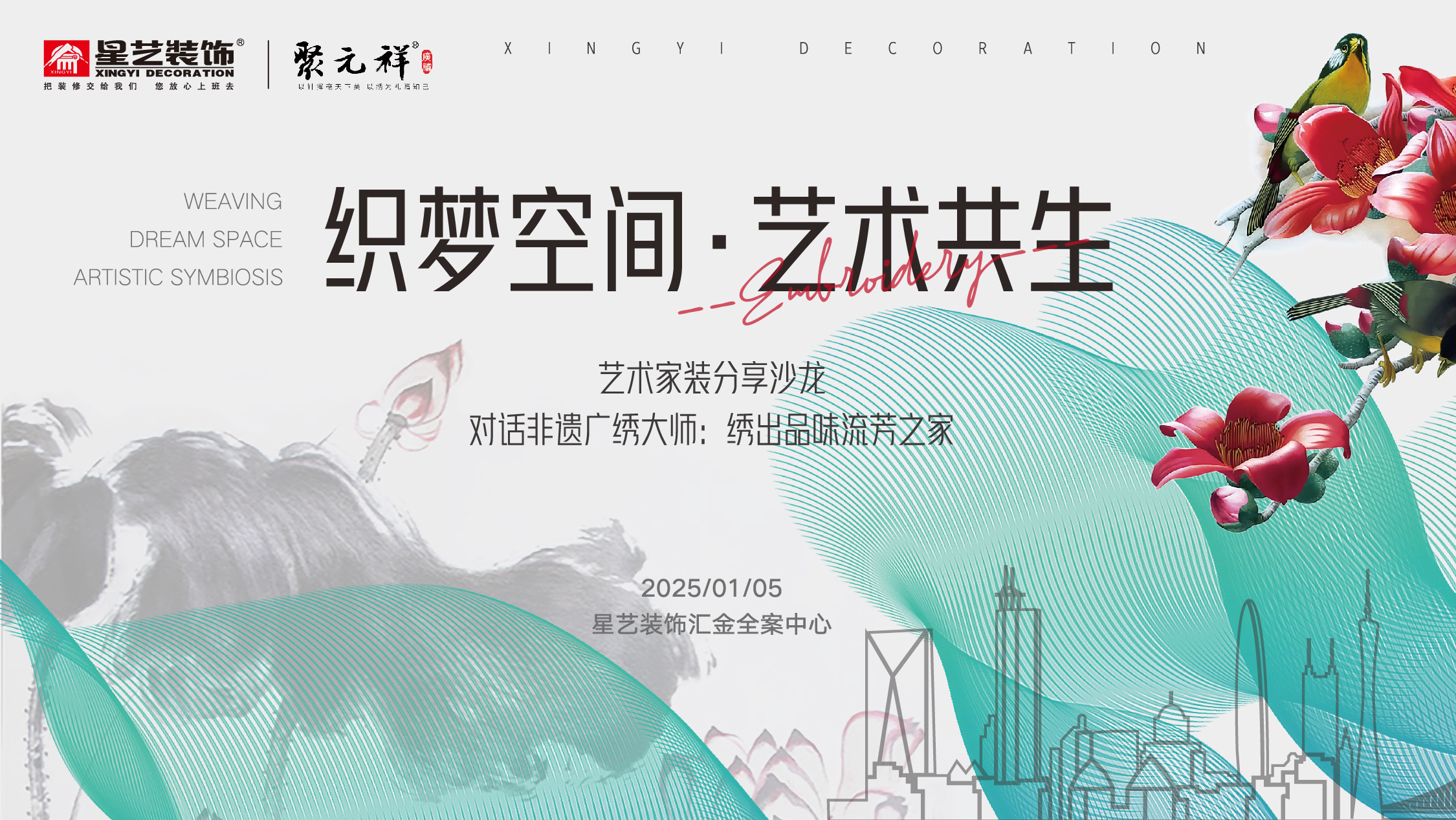 在這個快節奏的時代,每一份匠心獨運的藝術作品都如同一股清流,滋養著我們的心靈。近期,星藝匯金全案中心攜手非物質文化遺產——廣繡,邀請了廣繡非物質文化遺產的杰出傳承人與創新大師王新元老師,共同編織了一場關于家與藝術的夢幻邂逅——“藝術共生·廣繡藝術家裝沙龍”。